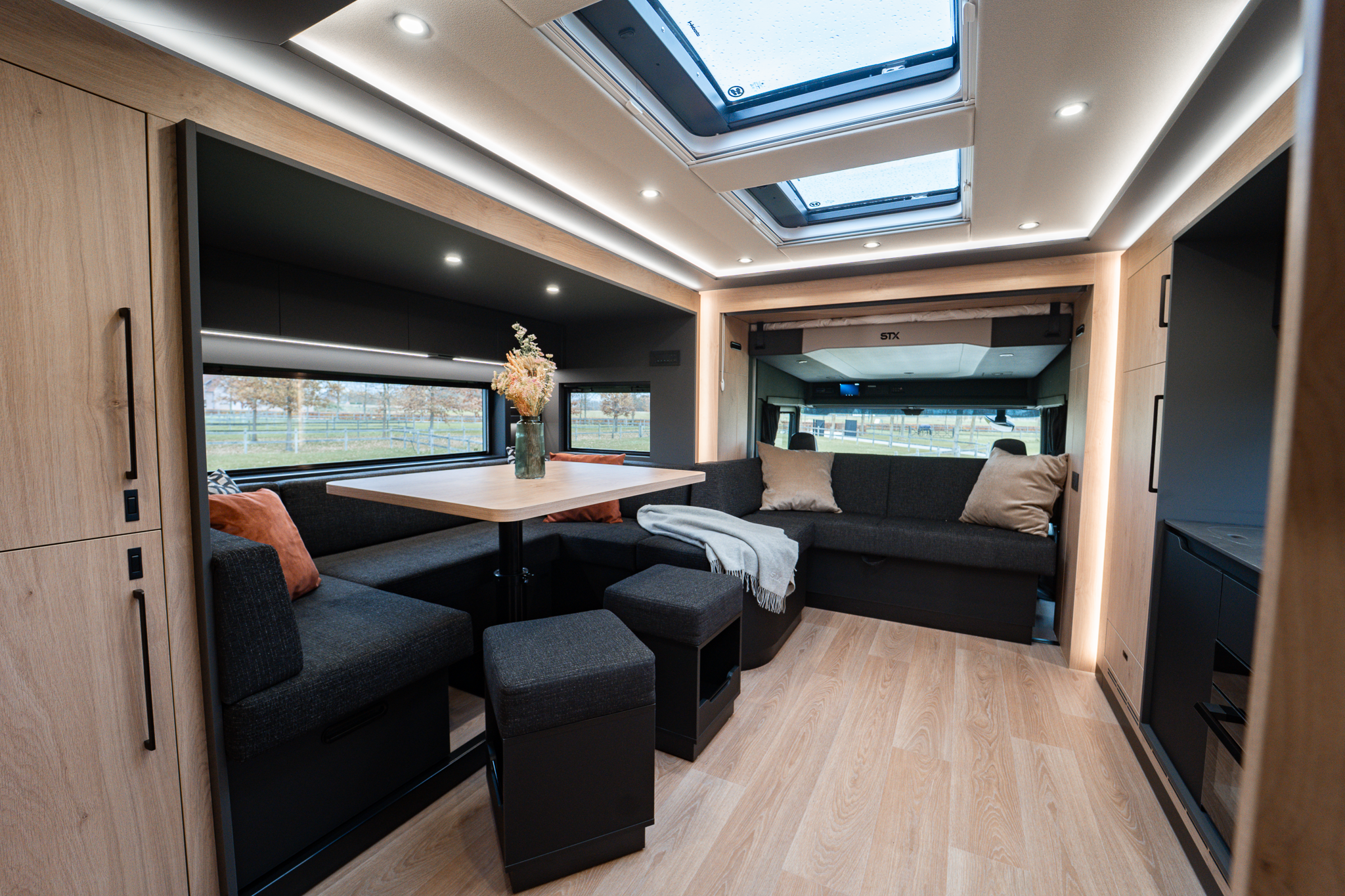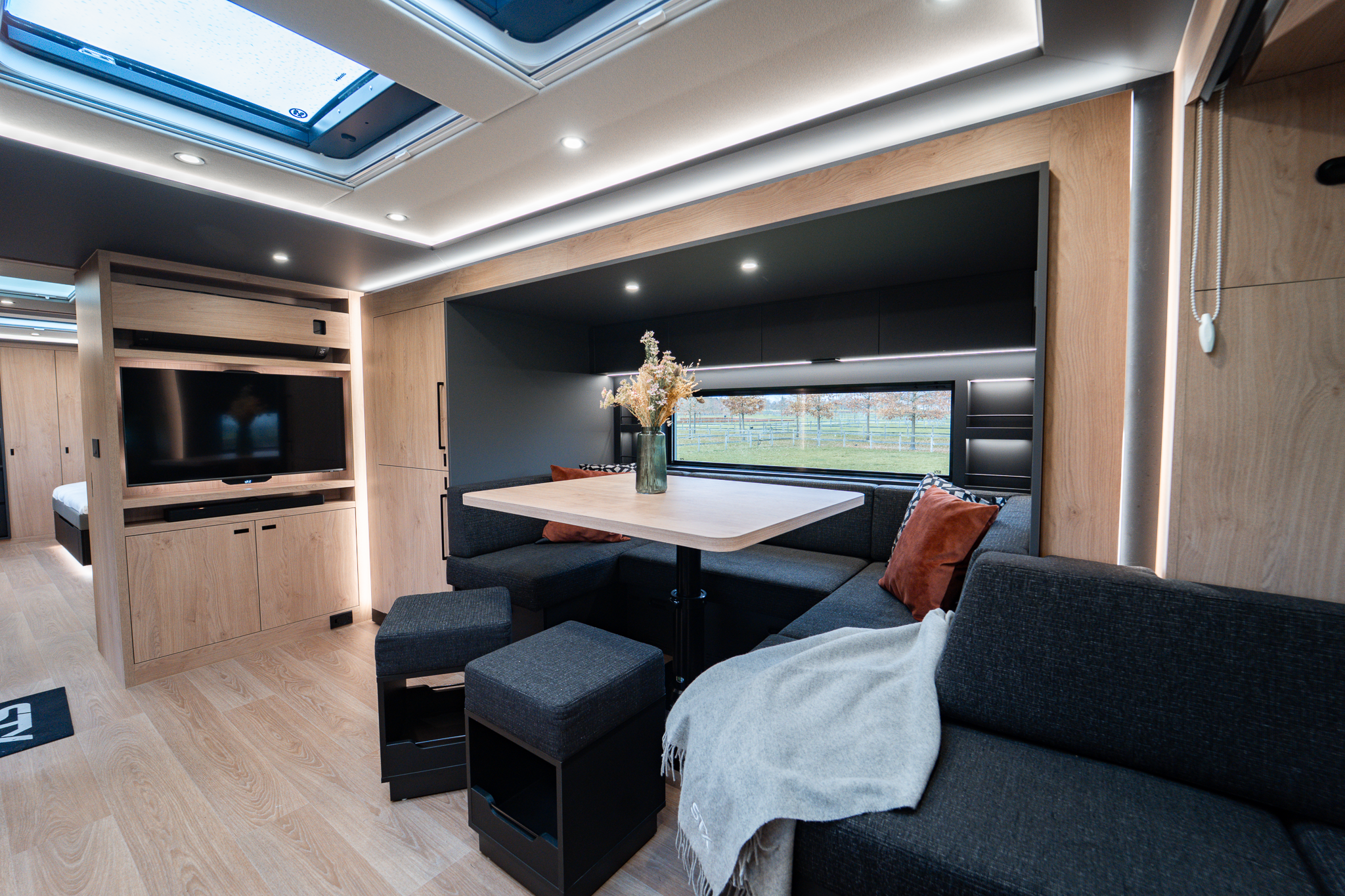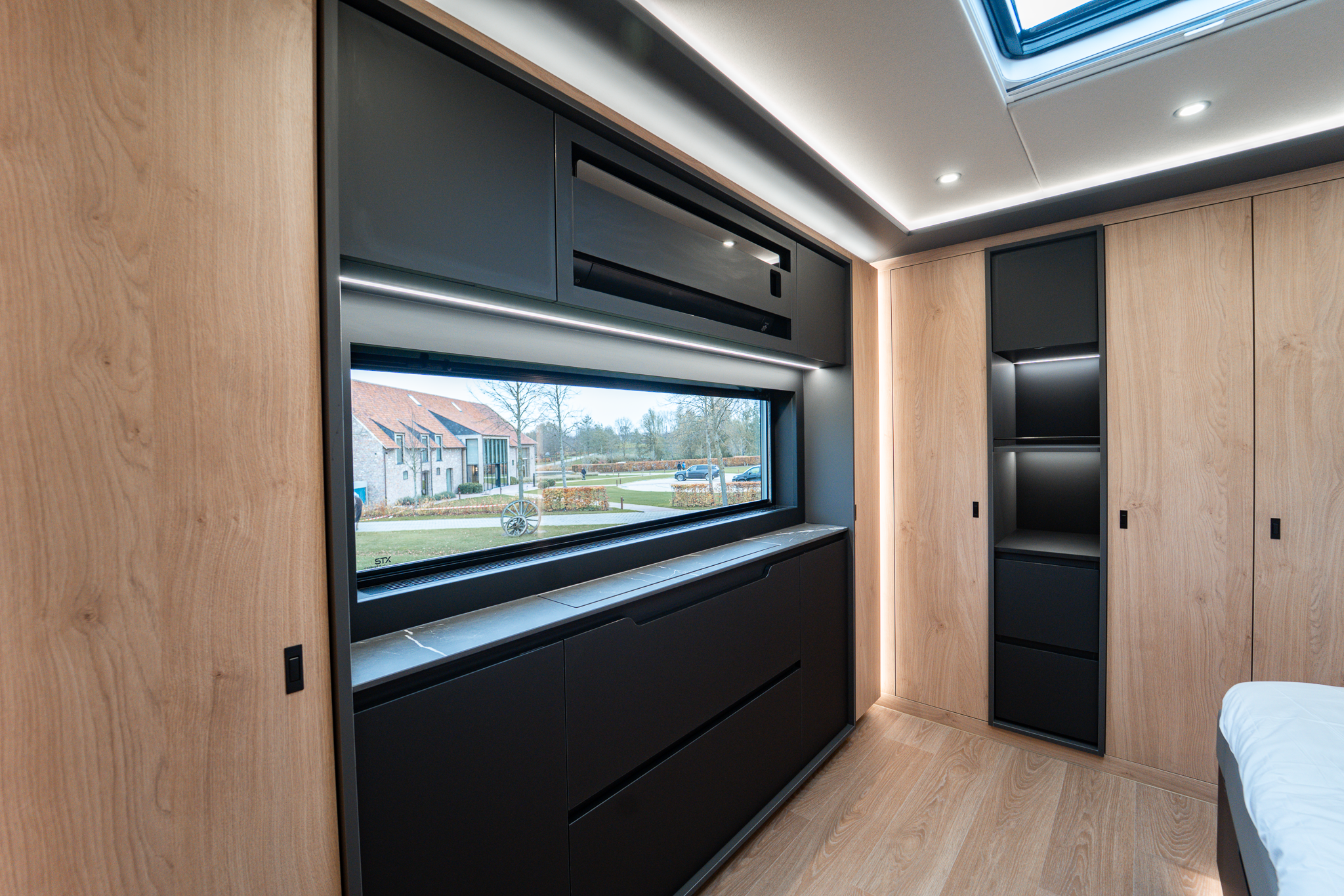 Two rolling curtains between the cabin and the living room