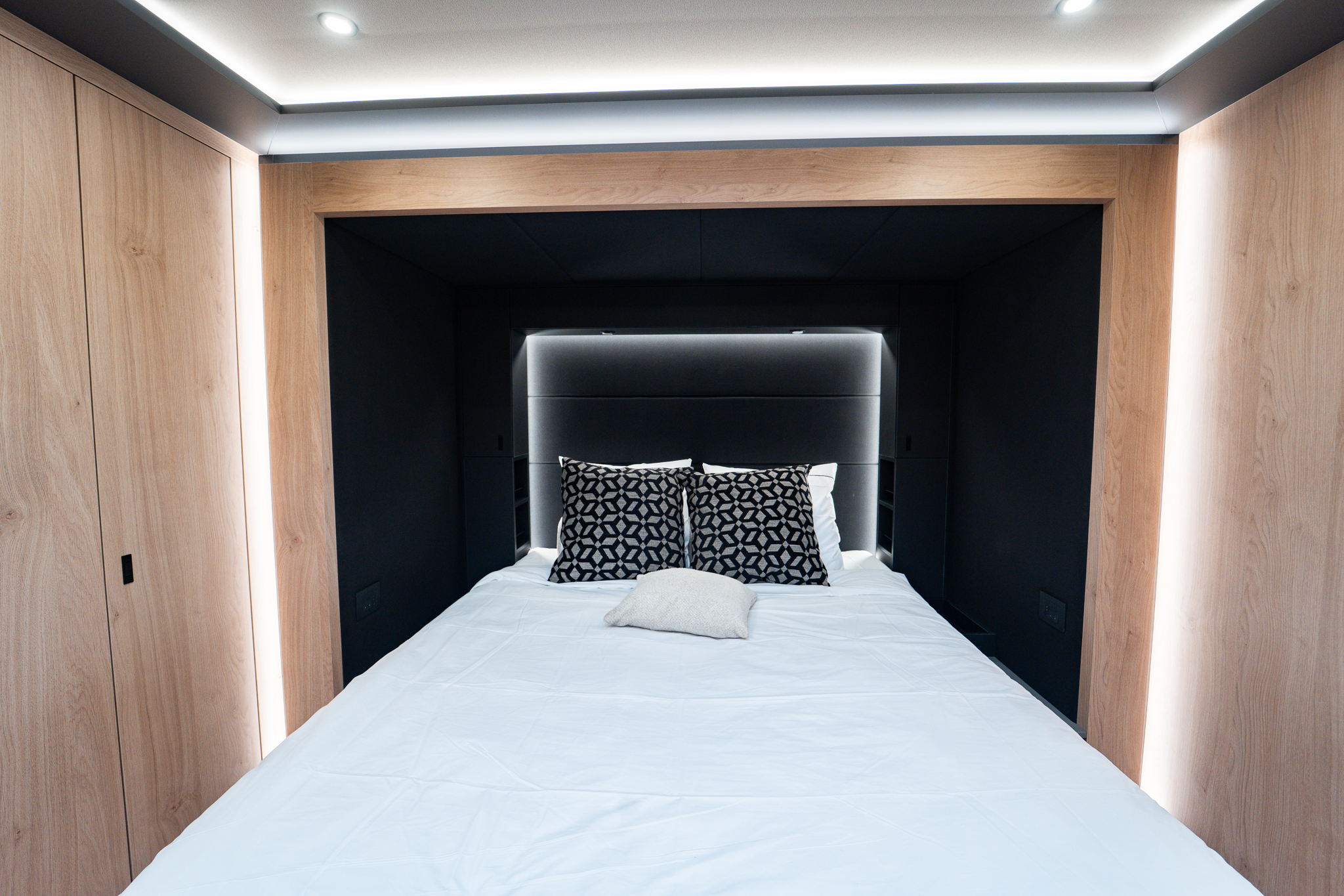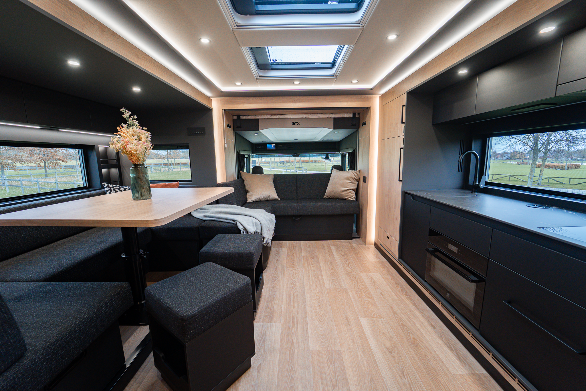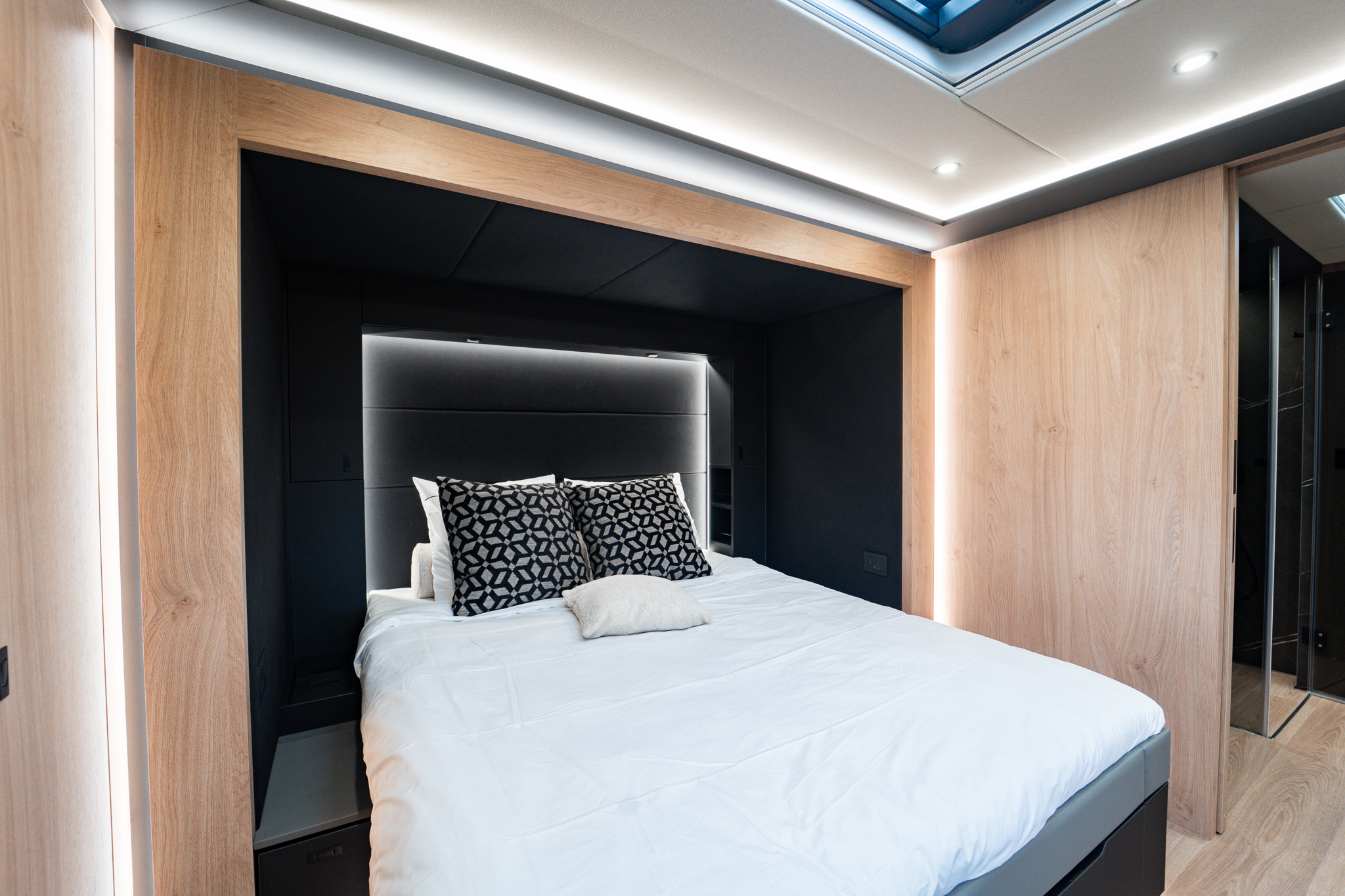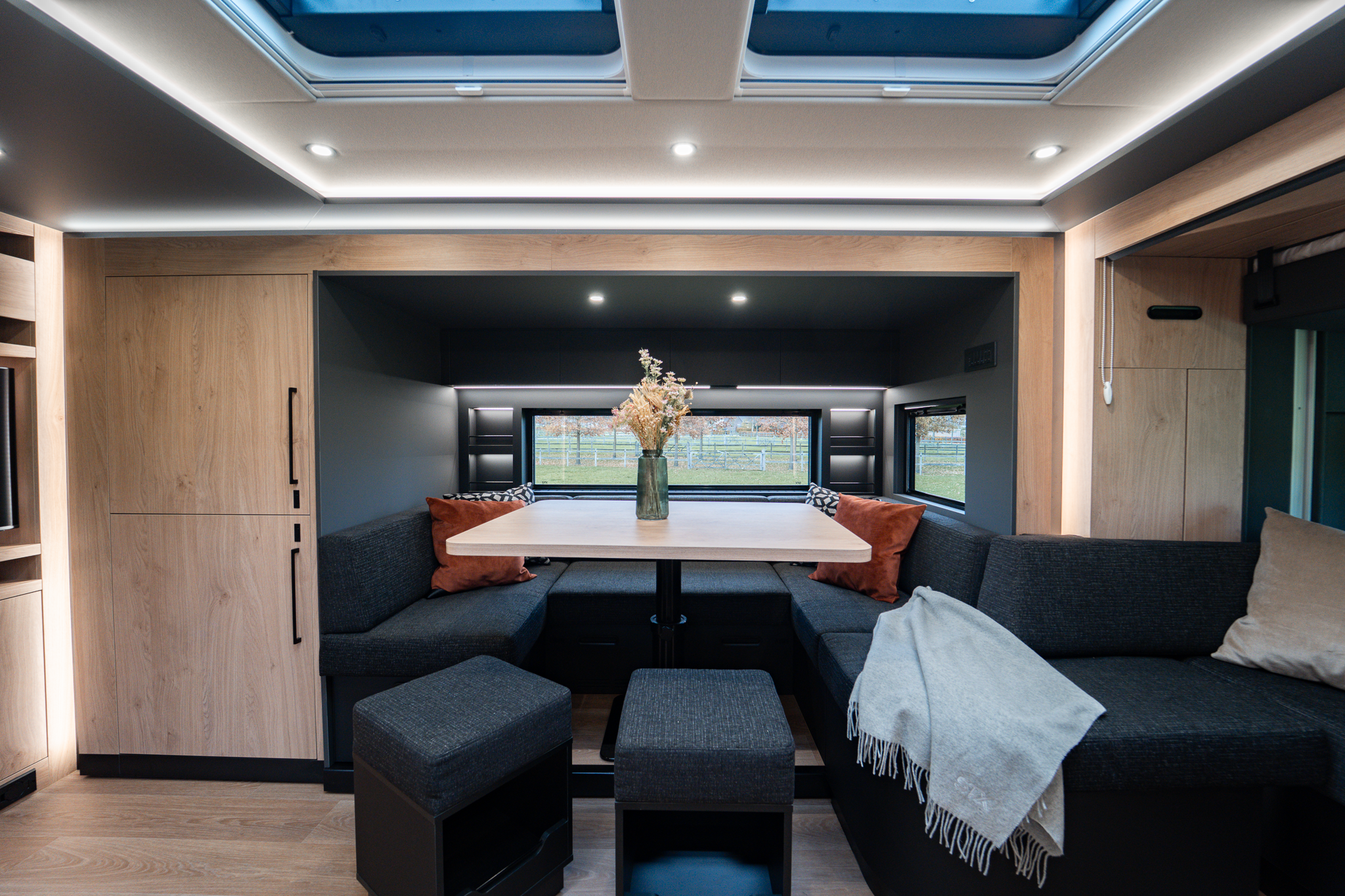 Two rolling curtains between the cabin and the living room