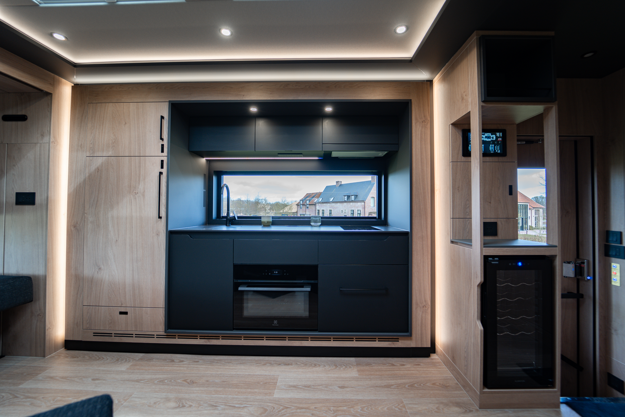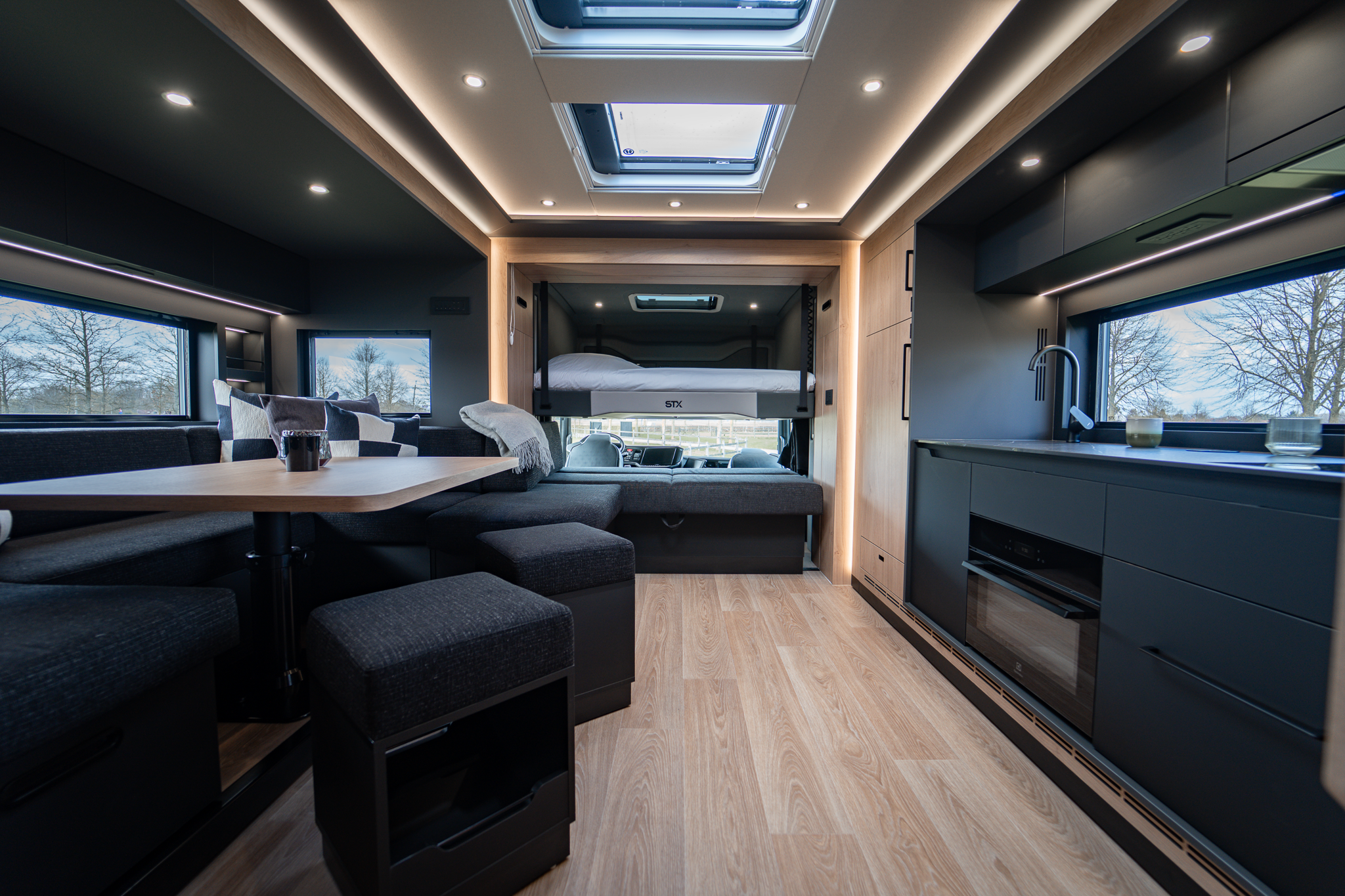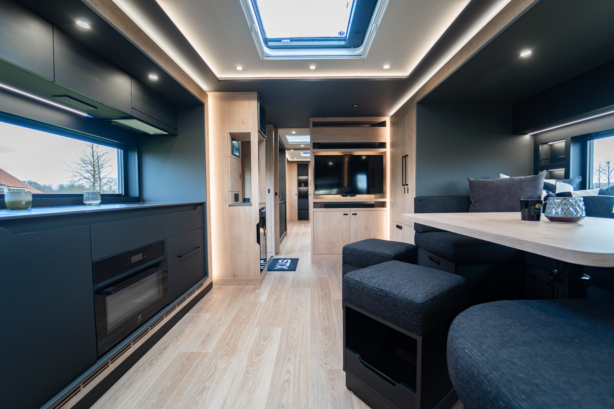 Two rolling curtains between the cabin and the living room