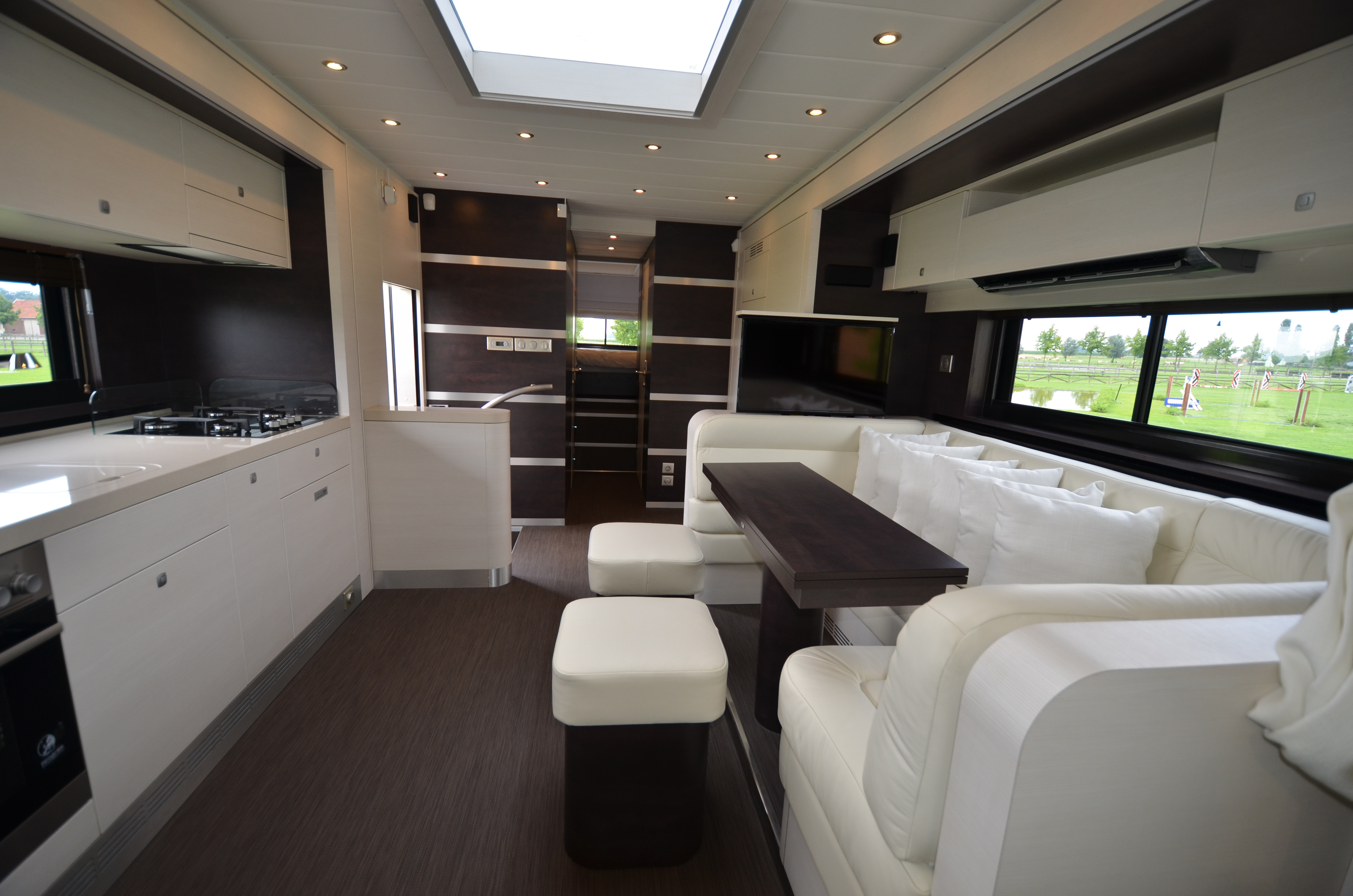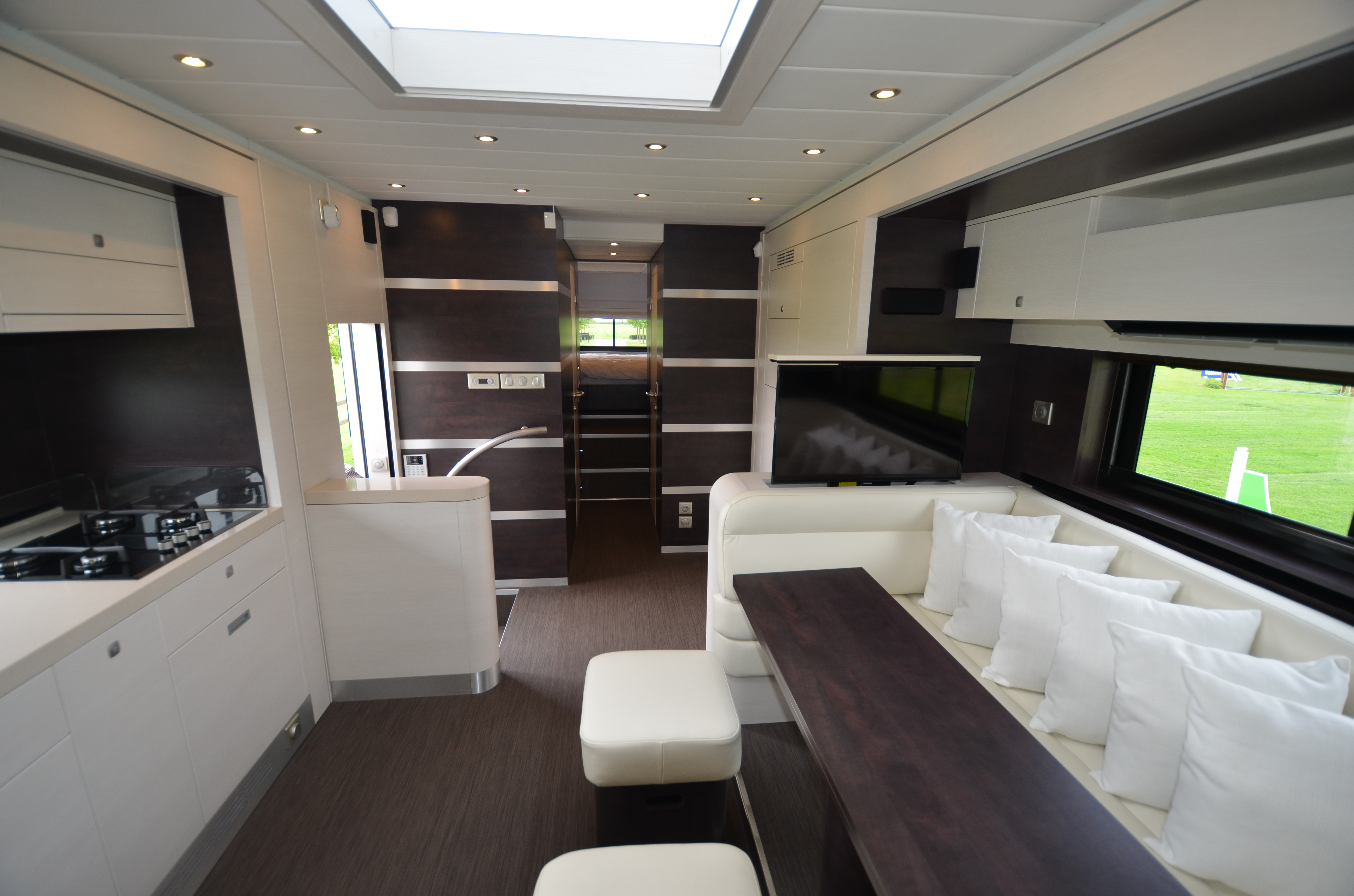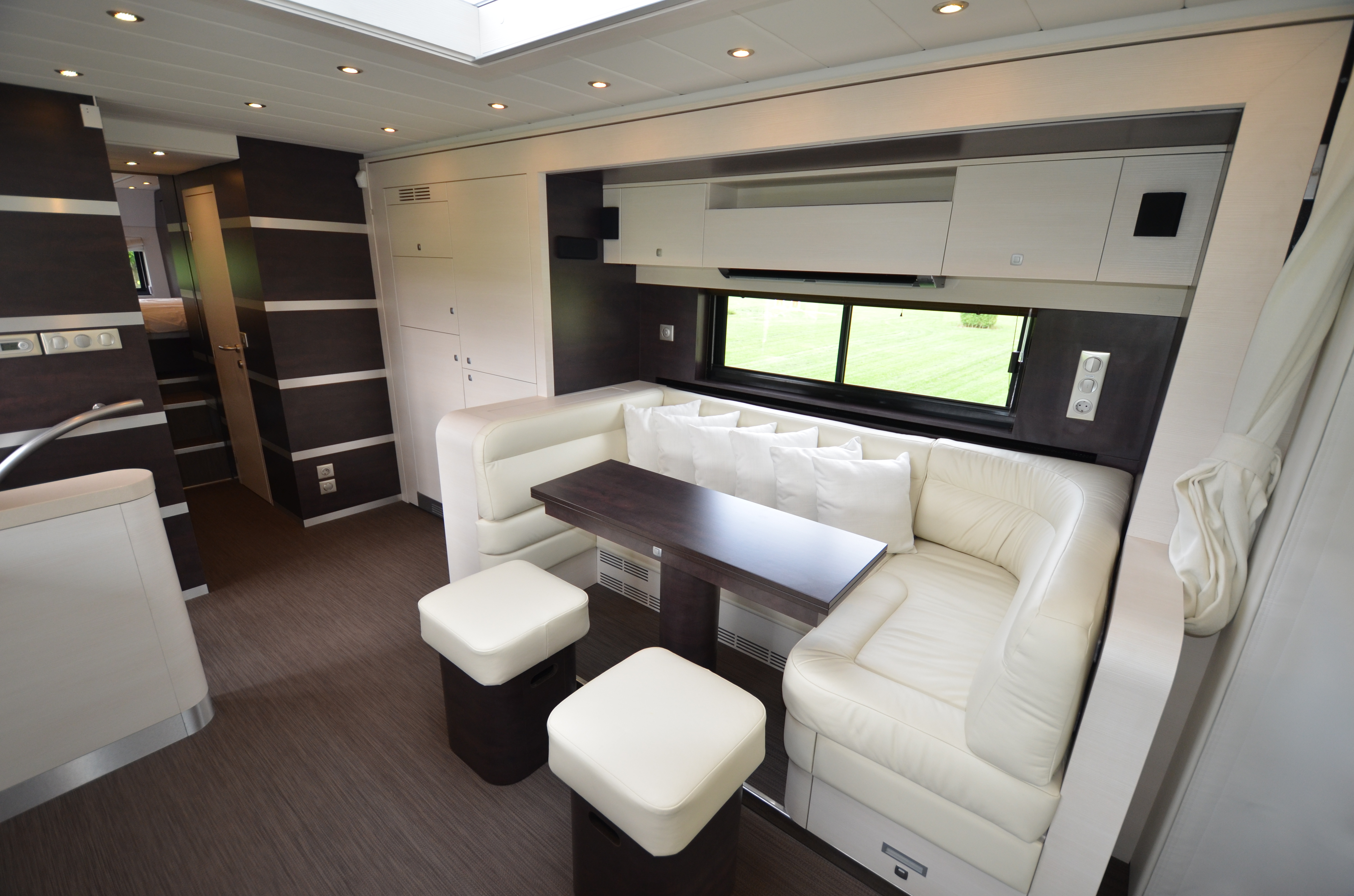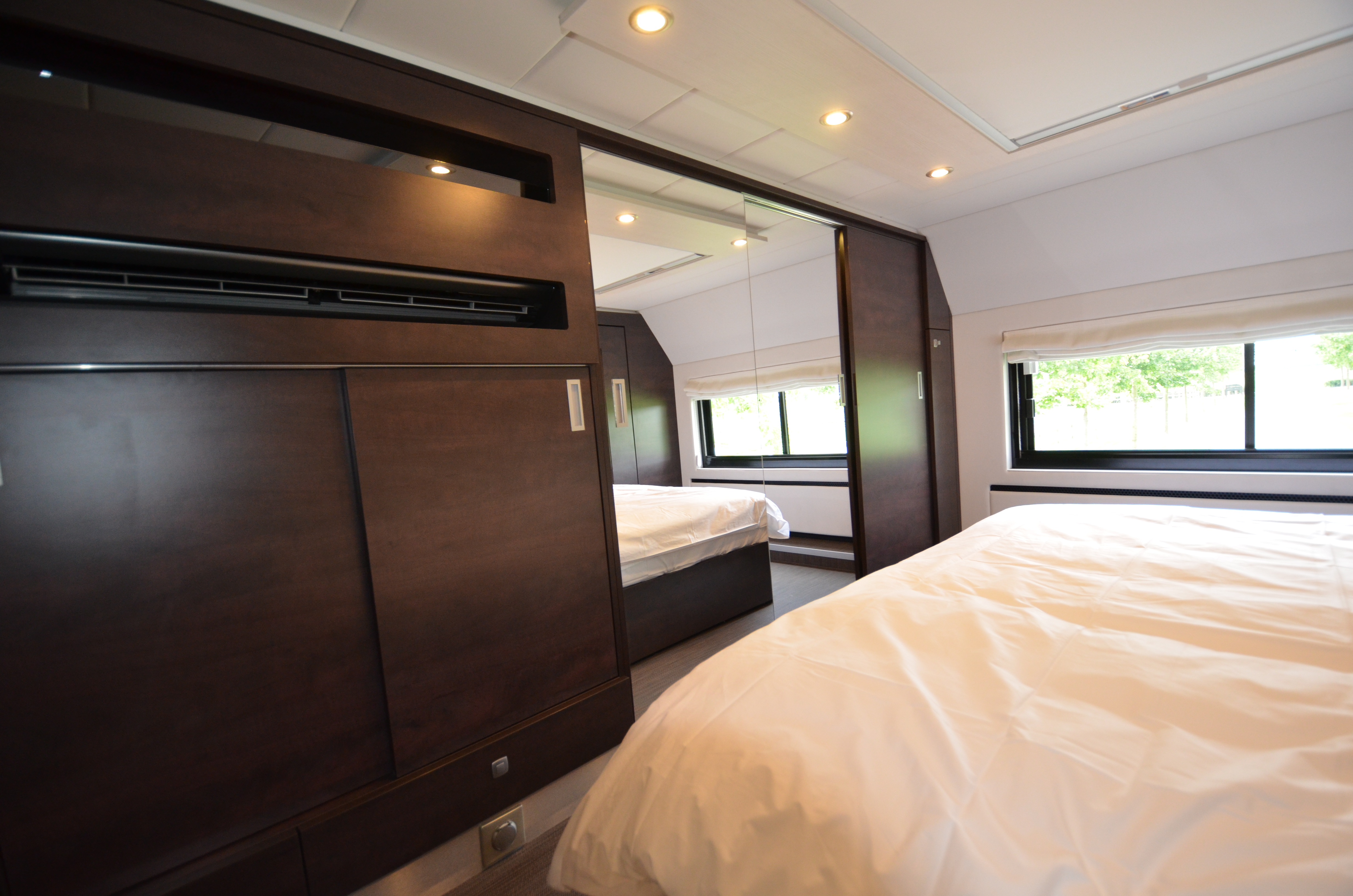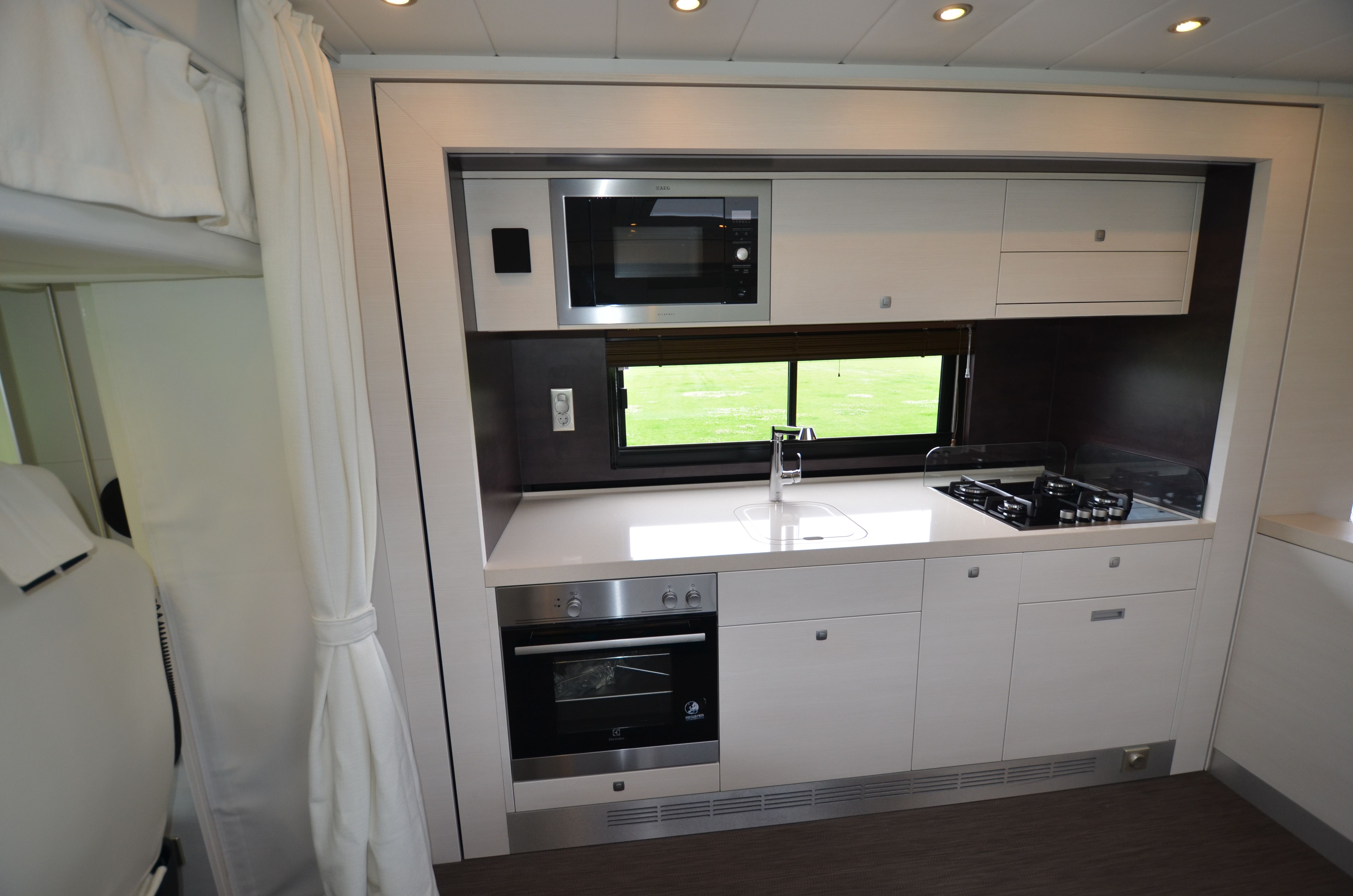 Two rolling curtains between the cabin and the living room